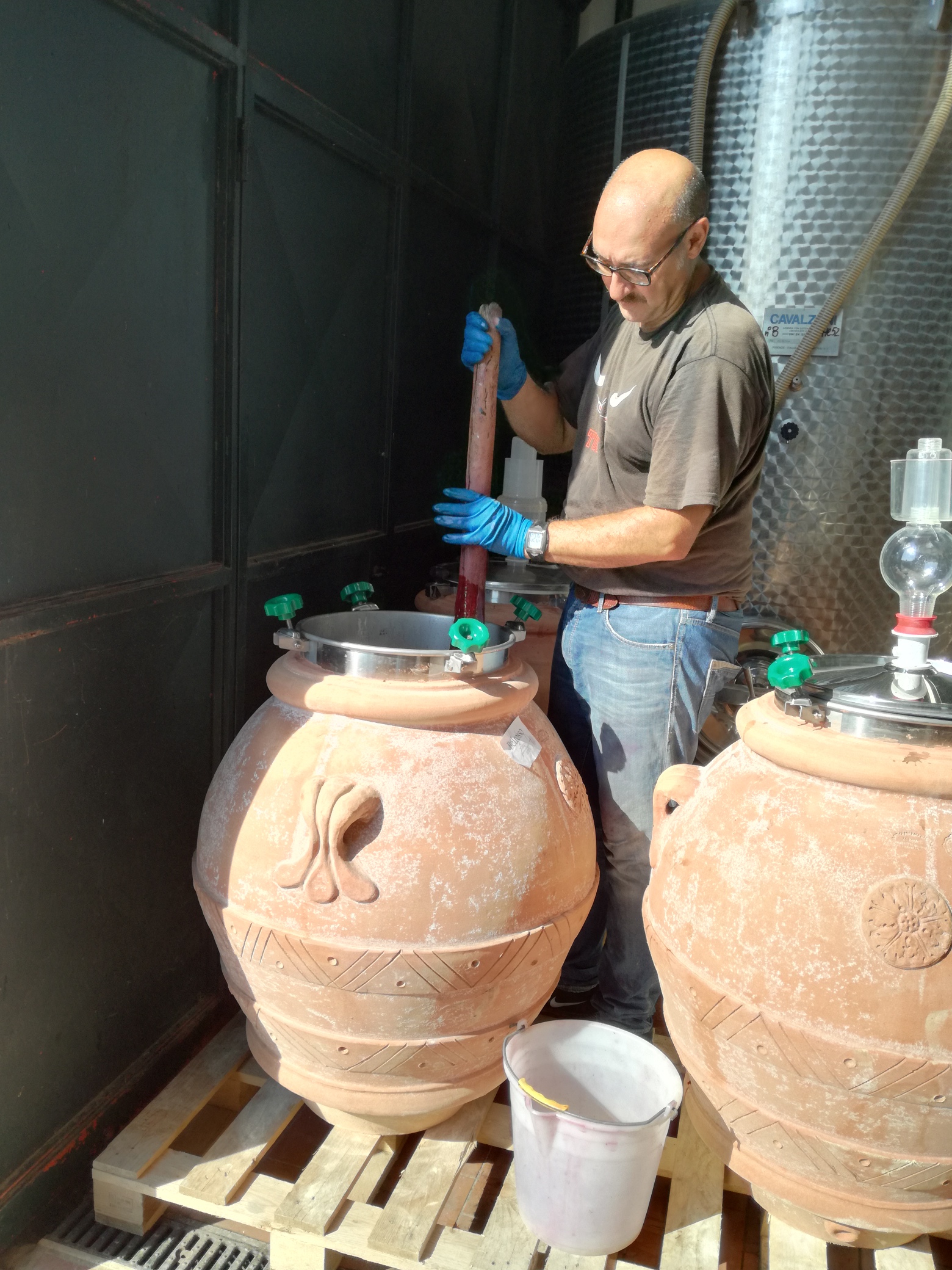 Marco Ferretti, direttore dell’azienda La Querce a Impruneta, mi racconta di come, nonostante il calo produttivo dovuto alle gelate primaverili, la vendemmia sarà di buona qualità e verrà, con tutta probabilità, effettuata in passaggi differenti a causa della difformità di maturazione delle uve. L’obbiettivo è destinare una quantità maggiore di Sangiovese da vinificare in orci di terracotta per la produzione del loro Toscana Igt Terra diVino, che riscuote un sempre più elevato gradimento tra i clienti.